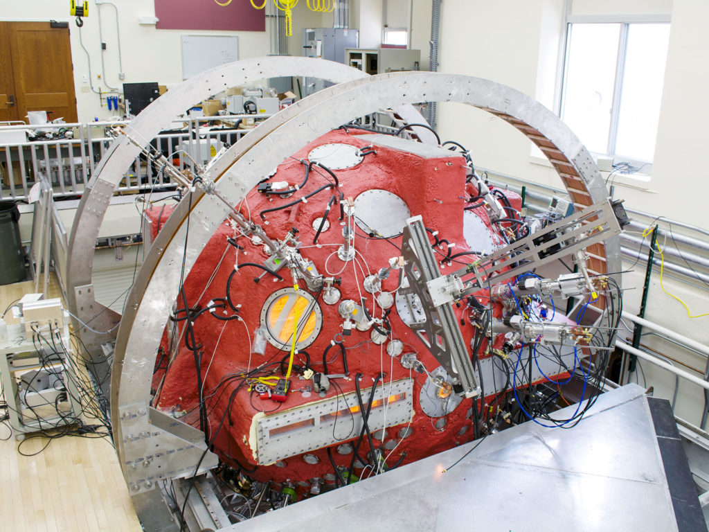 Inside a 3-meter-wide plasma containment chamber â the âBig Red Ballâ â the team placed a cylindrical permanent magnet about 10 centimeters wide and 10 centimeters long. This was their starter sun. They then filled the ball with a plasma made from helium gas and drove an electrical current through it, which created a force on the plasma that made it spin around the dipole.